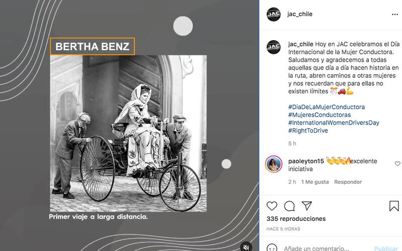 En JAC también recordaron a las que han abierto ruta, con un reel en su cuenta de instagram, precisando que “hoy en JAC celebramos el Día Internacional de la Mujer Conductora. Saludamos y agradecemos a todas aquellas que día a día hacen historia en la ruta, abren caminos a otras mujeres y nos recuerdan que para ellas no existen límites”.