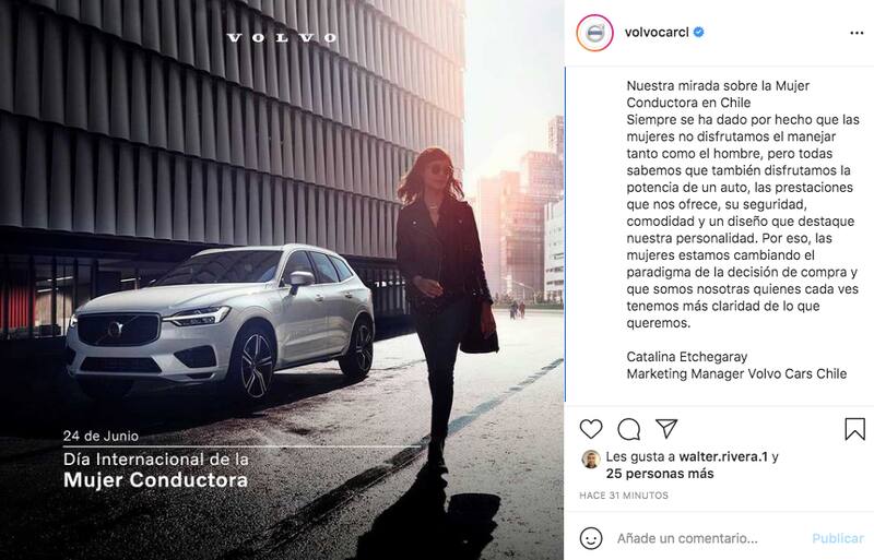 La seguridad y el poder de decisión de compra es un aspecto que también valoró Volvo en sus redes sociales, señalando que “en este Día Internacional de la Mujer Conductora conmemoramos a todas quienes piensan en Volvo como el auto que las lleva a todo destino, de manera personal, segura y sustentable.Reforzamos también nuestro compromiso por su seguridad, y no solo para Volvo, sino para toda la industria con nuestra Iniciativa E.V.A que puedes ver en nuestras stories. Por la seguridad de todas, por el empuje de todas, hoy el mundo las reconoce”.