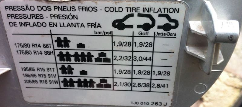 Lo primero, que hay que decir es que cada auto tiene una presión ideal que se encuentra indicada en el marco de la puerta del conductor. Esta puede variar en caso de que el vehículo viaje cargado o descargado.
