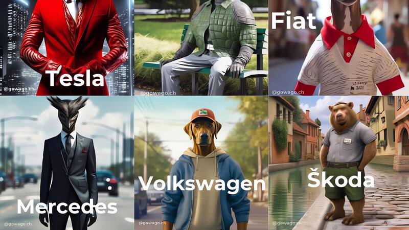 La compañía suiza Gowago utilizó tecnología como Chat GPT para ver qué animal representa mejor a cada marca.