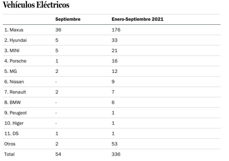 Según cifras de Anac, en septiembre de este año se comercializaron 386 unidades de vehículos con tecnologías de cero y bajas emisiones -eléctricos, híbridos, híbridos enchufables y microhíbridos- lo que representa un crecimiento de 310,6% frente al mismo mes de 2020.