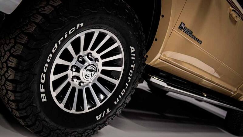 En diseño, tiene una enorme parrilla cromada y la cabeza de un carnero sobre el extremo del capot, a lo que se suman por el costado llantas que buscan emular las de aquellas camionetas de hace cuatro décadas con rayos y letras blancas.