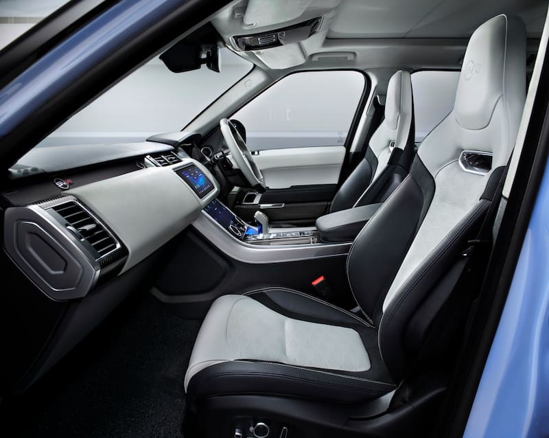En el interior, según detalla Land Rover, también se aprecia el trabajo artesanal del equipo SV Bespoke. Los diseños exclusivos de las insignias cromadas SV Bespoke en el pilar B, las levas de cambio de metal anodizado negro y los estribos iluminados Ultimate Edition realzan el interior, que incorpora además asientos ligeros Performance de piel Windsor y con las letras SVR en relieve.