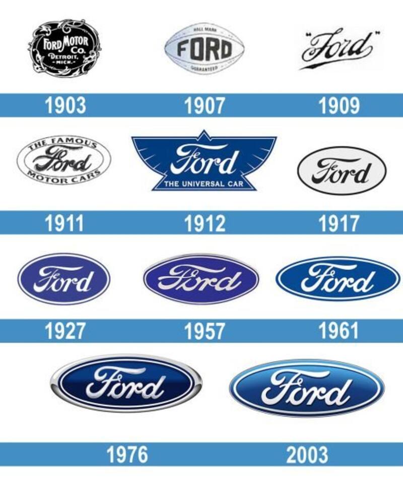 El huevo que encierra a ‘Ford’ no se conoció hasta cuatro años más tarde, cuando los autos del impulsor del fordismo llegaron al Reino Unido. Allí, los empresarios importadores Perry, Thornton y Schreiber decidieron destacar la fiabilidad de la entonces desconocida Ford, agregando esta mínima modificación. En 1927 saldría de fábrica el primer auto Ford con el emblema del óvalo azul. En 2003, el sello se modernizó con trazos más suaves y estirados.