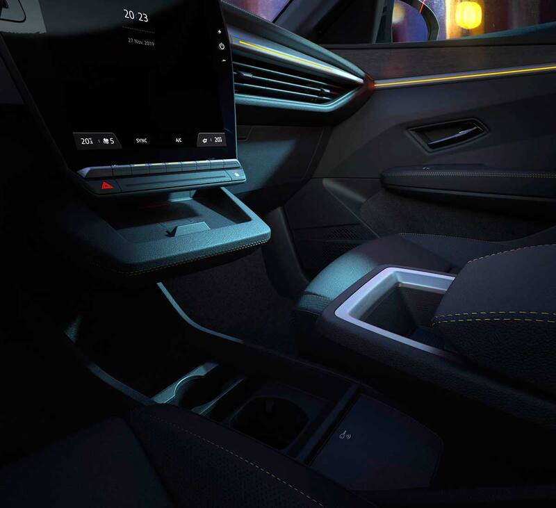 Más abajo aparece el nombre ‘Mégane’ con la última ‘e’ escrita en una tipografía distintiva, en referencia a la naturaleza eléctrica del modelo.