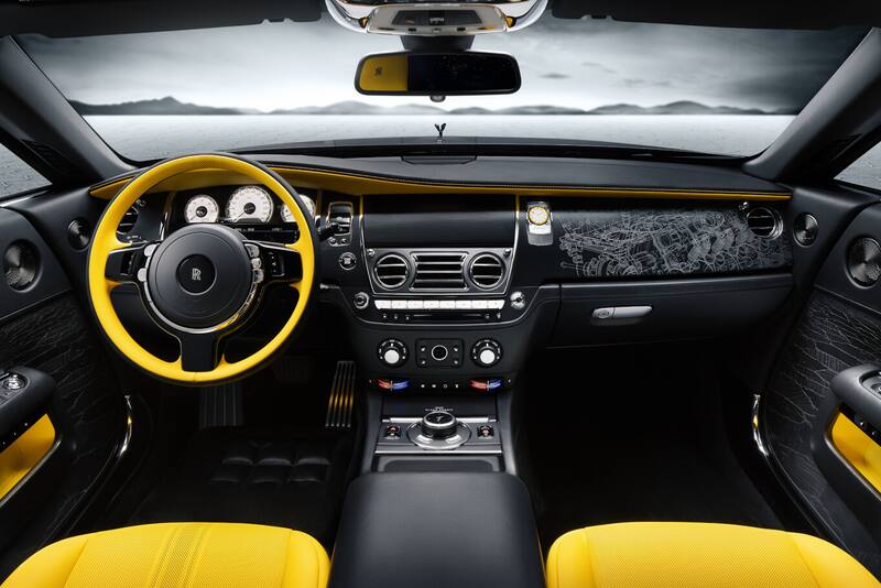 Solo 12 unidades de este Rolls-Royce Wraith Black Arrow verán la luz, una por cada cilindro de su motor de 6.6 litros que desarrolla 632 caballos de potencia y 800 Nm de par máximo, y que luce una insignia especial con el borde amarillo que lo identifica como el último V12.