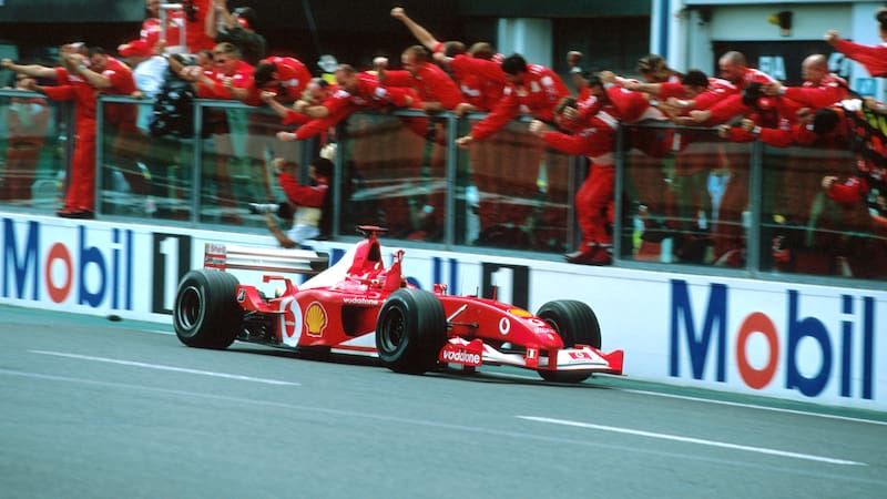 Con todos los chasis que empleó en 2002, el papá de Mick Schumacher logró en total 11 victorias, subiendo al podio en todas las carreras, algo que nadie más ha conseguido hasta ahora. Asimismo, ese año la Scuderia Ferrari consiguió su 12º título de Constructores.