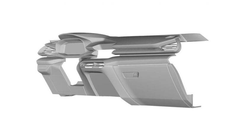 Las fotos de los registros de patente también muestran un tablero con formas angulosas y una enorme pantalla flotante, la cual tendrá una serie de botones táctiles para atajos del sistema de clima y volumen, tal como lo hemos visto en otros modelos del grupo, como el recién estrenado Golf GTI 2025.