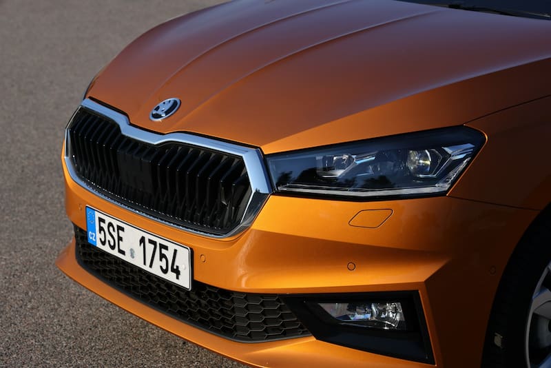 En diseño, el Skoda Fabia mantiene el actual lenguaje de diseño de los checos, con una estética bien definida y las clásicas líneas de la carrocería en las puertas delanteras que estilizan el triángulo característico de la bandera checa.