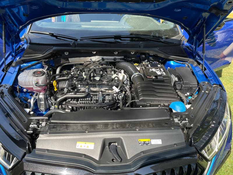 El nuevo motor EVO 2.0 TSI se basa en la unidad de potencia de la generación anterior. Eso sí, el desarrollo posterior del motor se centró en mantener sus características dinámicas y haciéndolo aún más eficiente. Esto se consiguió aumentando la presión de inyección de combustible hasta 350 bares y utilizando coronas de pistón de nueva forma y junta del cigüeñal para reducir la fricción y, por tanto, el consumo de combustible.
