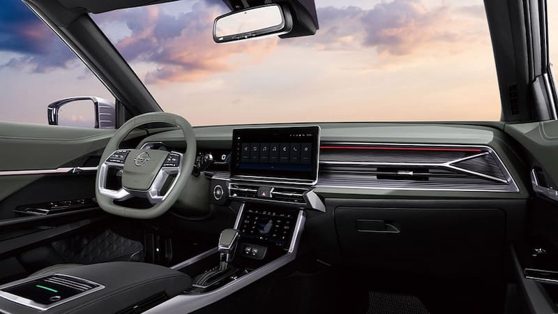 El exterior del Torres se desarrolló en base al lenguaje de diseño que mencionamos anteriormente que se denomina “Powered by Toughness”. Dispone de un estilo imponente basado en la herencia de diseño auténtica y distintiva de la marca. En su frontal se evidencia una pequeña parrilla que se conecta con unos delgados y estilizados faros led. Se aprecia una carrocería musculosa y aventurera haciendo alusión a lo que significa el Parque Nacional Torres del Paine con