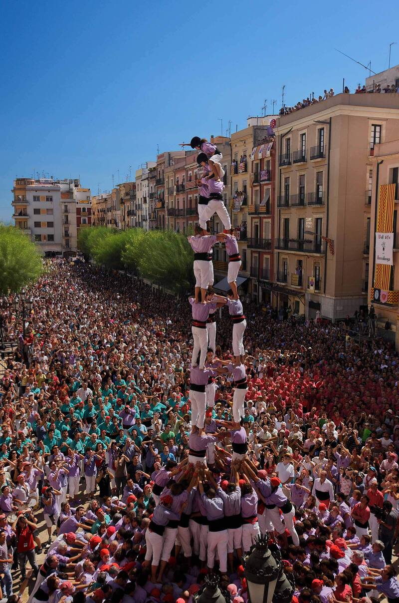 Un buen ejemplo de ello son los castells (castillos) que no son más que torres humanas formadas por decenas de personas, que alcanzan varios metros de altura y en el que el riesgo de caída está siempre implícito. En la base se forma una 'pinya' y sobre ese tumulto va subiendo el resto, pisando sobre los hombros.