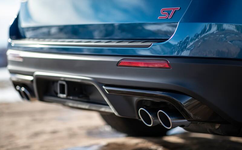 En cuanto a diseño, tiene pequeños cambios con las variantes estándar, como una parrilla deportiva pintada en negro y el emblema ST, el alerón trasero aporta a la estética y ayuda a la eficiencia aerodinámica y se suman los espejos laterales abatibles eléctricamente con calefacción y proyección del logo ST. Finalmente, en la zaga se aprecian las salidas de cuatro escapes cromados y los faros totalmente LED, lo que completan los elementos que le otorgan su carácter deportivo.
