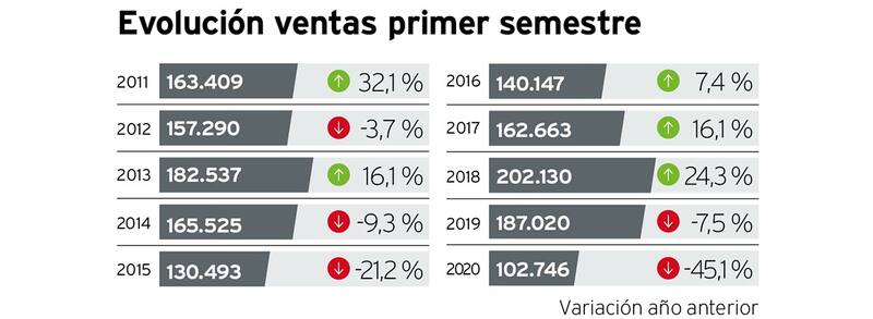La venta de vehículos nuevos sufrió un descenso superior al 45% entre enero y junio, fenómeno que tiene su explicación en la pandemia que azota a todo el planeta.