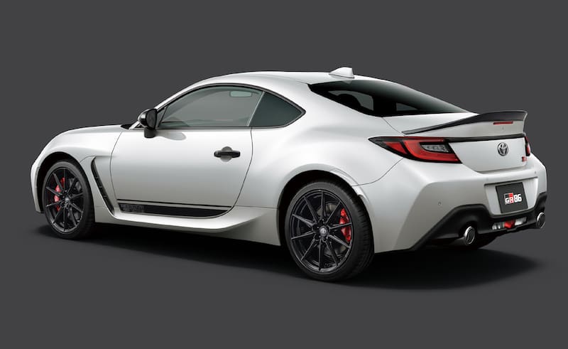 El nuevo modelo es una especie de GR86 ochentero, caracterizado por una carrocería en blanco o rojo con franjas negras por los costados, detalle típico del AE86 de 1983. Se mantienen también el alerón trasero y retrovisores laterales en negro.