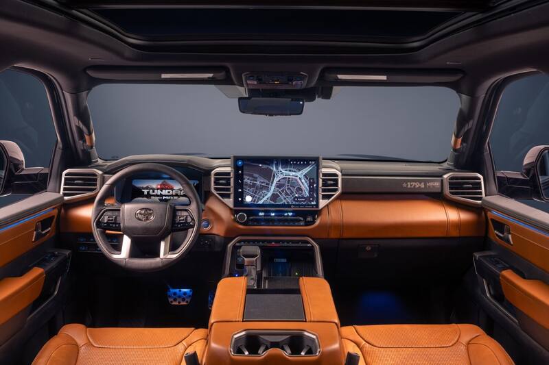 Esta Tundra 1794 Limited Edition será propulsado por el tren motriz de configuración híbrida que combina el motor V6 de 3.5 litros con doble turbocompresor y un motor eléctrico que entrega una potencia máxima de 437 Hp y 790 Nm de par.