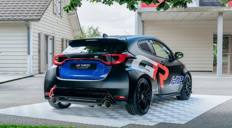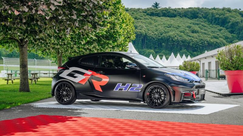 Decorado con los mismos colores de los Yaris del Campeonato Mundial de Rally (WRC), el Toyota GR Yaris H2 monta un bloque de 280 caballos de potencia, que funciona con hidrógeno, en lugar de con gasolina como la variante convencional.
