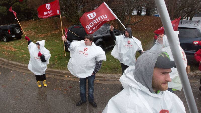 Los obreros en la alianza Unifor marcharon a las calles desde la planta Oshawa "en protesta" del anuncio de Mary Barra en representación de General Motors. "Me he mudado con mi familia dos veces por esta compañía y ahora me hacen esto", dijo un emocionado trabajador a la cadena CBC TV mientras se retiraba de la planta.