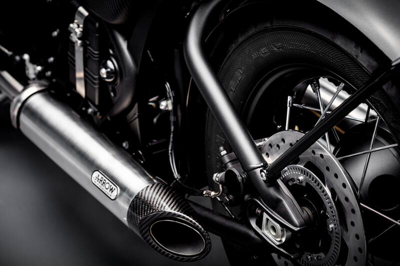 Otros atractivos son el buje trasero inspirado en los frenos de tambor, el guardabarros trasero abrazando la rueda, el contacto, los retrovisores en los extremos del manillar y el tapón del estanque con el logotipo de Triumph.