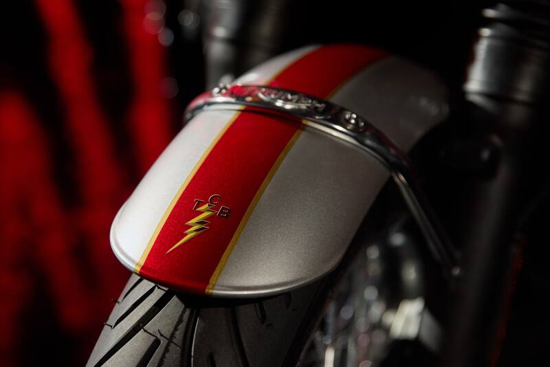 Las franjas plateadas en el depósito se complementan con las bandas de los tapabarros, acentuadas por líneas doradas pintadas a mano. Los silenciadores estilo “peashooter” tienen un acabado cromado profundo y de alta calidad.