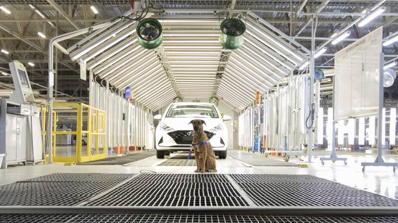 Tucson Prime, el perro de Hyundai, vuelve a hacer de las suyas y visita planta de la compañía