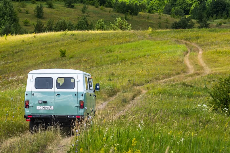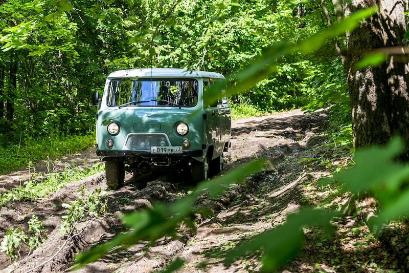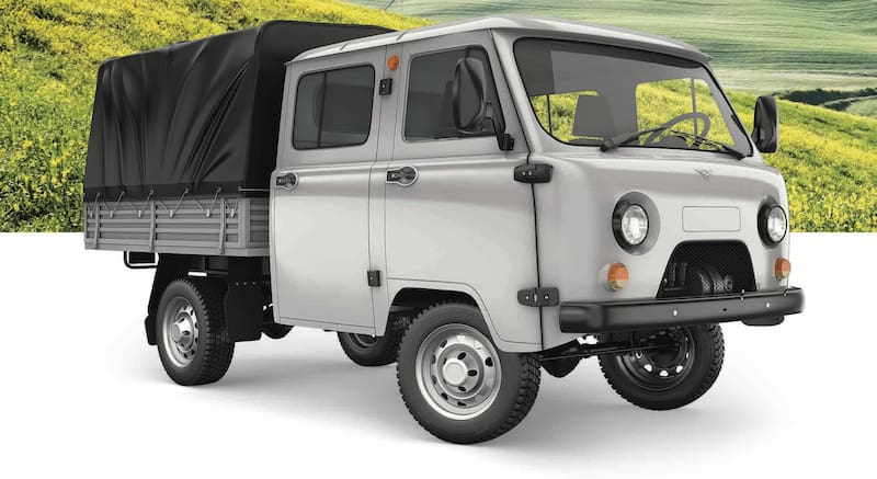 Mecánicamente, el ’pan de molde’ de herencia soviética se gobierna por un motor bencinero de 2.693 cc que produce 112 Hp y 198 Nm de par a 2.500 rpm. Asociado a una caja manual de cinco velocidades, homologa un consumo medio de 7,9 km/l (utiliza bencina de 93 octanos). Tiene tracción 4x4 y una caja de transferencia de dos velocidades con desconexión del eje delantero.