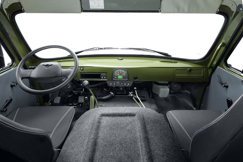 La verdad es que el concepto espartano de su interior puede quedar algo corto. Mangueras a la vista, las dos palancas de la tracción como si fueran las de las aperturas de las puertas de las antiguas micros, los botones tipo interruptor solo nos muestran que poco ha evolucionado en estos años este modelo. Y la pregunta viene de cajón: ¿Cómo un vehículo de estas características tiene cabida en un mercado como el nuestro comenzando el año 2021?