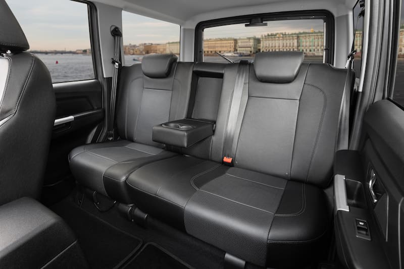Hay cosas más destacadas. El UAZ Kazak responde a su espíritu 100% ruso con elementos como calefacción de volante y de asientos en todas las plazas. Frío nadie va a pasar. Otro punto positivo es el excelente espacio interior: caben cinco adultos grandes (aunque el de la plaza central trasera no tiene apoyacabeza). El maletero carga 650 litros en condiciones normales, que pueden ser más de 2.400 litros si se abaten los puestos de la segunda fila. Hay ganchos en el suelo para estibar cualquier paquete.