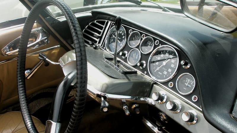El volante también aparece a menudo en los rankings de los timones más peculiares en la historia automotriz. Es una especie de extensión de la columna de dirección, que desemboca en un asa que atenaza la circunferencia del volante. En el fondo, no tiene dos ni tres radios como el común de los vehículos.