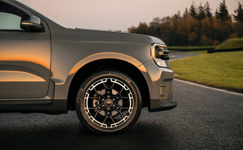 La aerodinámica también se ha optimizado con un spoiler delantero, deflectores en el techo y la caja de carga. Unas llamativas llantas de 21 pulgadas con neumáticos de asfalto completan el conjunto.