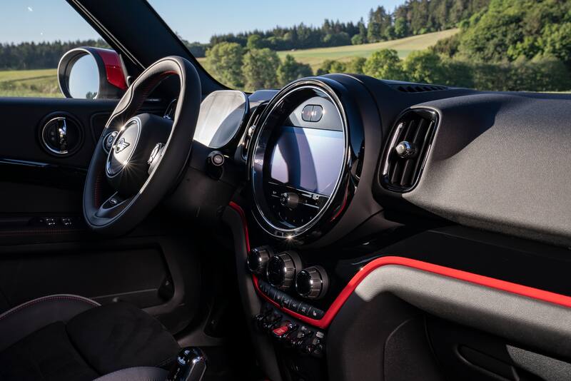En dimensiones ni en la parte mecánica hay cambios. El Countryman John Cooper Works sigue midiendo 4.299 mm en largo (con distancia entre ejes de 2.670 mm), 1.882 mm de ancho y 1.557 mm de alto, en tanto que bajo el capó continúa reinando el motor encargado de mover los 1.600 kilos de carrocería. Es un 2.0 litros TwinPower Turbo capaz de desarrollar 306 caballos y 450 Nm. En armonía con la caja automática Steptronic de ocho cambios, es capaz de hacer el 0 a 100 km/h en 5,1 segundos y de lograr una velocidad punta de 250 km/h (limitada).