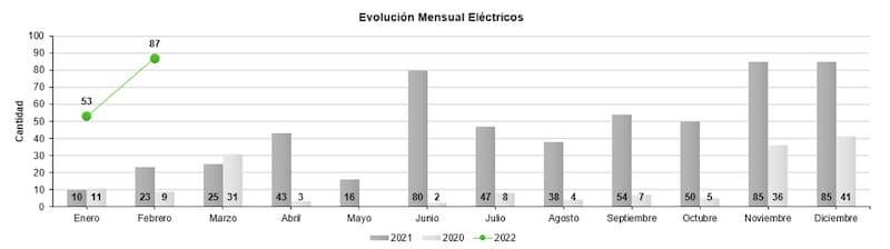 De esta manera, entre enero y febrero de 2022 se acumulan 709 unidades vendidas, con un crecimiento de 178%, frente al mismo período del año anterior.