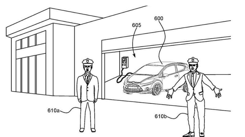 Dentro de los más llamativos, estaría el de evitar robos. Ford plantea en esta patente el holograma de un agente de policía real que se proyectaría fuera del auto, si se detecta que alguien intenta abrirlo a la fuerza. Podría funcionar como elemento disuasorio o bien incluso para enviar una alerta al dueño del vehículo si el ladrón toca o atraviesa al policía virtual. Lo mismo haría, por ejemplo, un perro guardián.