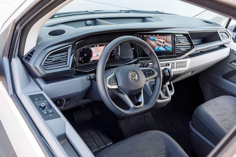 La nueva Caravelle comparte la base estructural de Transporter, pero se orienta al traslado confortable de hasta ocho pasajeros. Incorpora vidrios laterales reflectantes de calor y destaca por su maletero de 1.800 litros, lo que amplía su versatilidad para servicios de turismo, transporte corporativo o movilidad familiar de alta demanda.