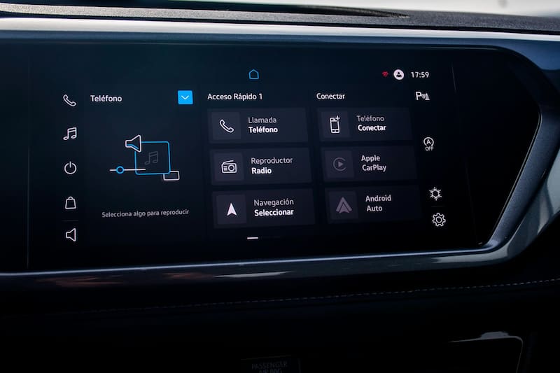 Frente a los ojos del conductor nos encontramos con una pantalla muy personalizable que la marca denomina ActiveInfoDisplay. Con una gran resolución, nos entrega desde la información básica de manejo a los datos de la música que estamos escuchando, la autonomía restante. Lo bueno de este sistema es que es sencillo de manejar desde los mandos en el volante y no se debe estar horas aprendiendo su funcionamiento.