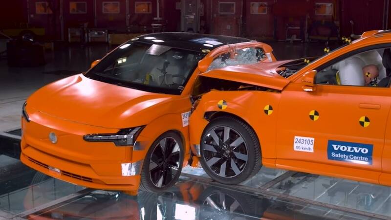 La diferencia de peso en ambos productos podría significar un comportamiento totalmente distinto ante un accidente, razón por la cual el equipo de ingenieros de la marca decide aprovechar sus laboratorios de pruebas de choque para realizar un ensayo real de cómo los soportes estructurales del pequeño EX30 pueden asegurar la integridad de sus ocupantes incluso en un impacto contra un vehículo mucho más voluminoso.