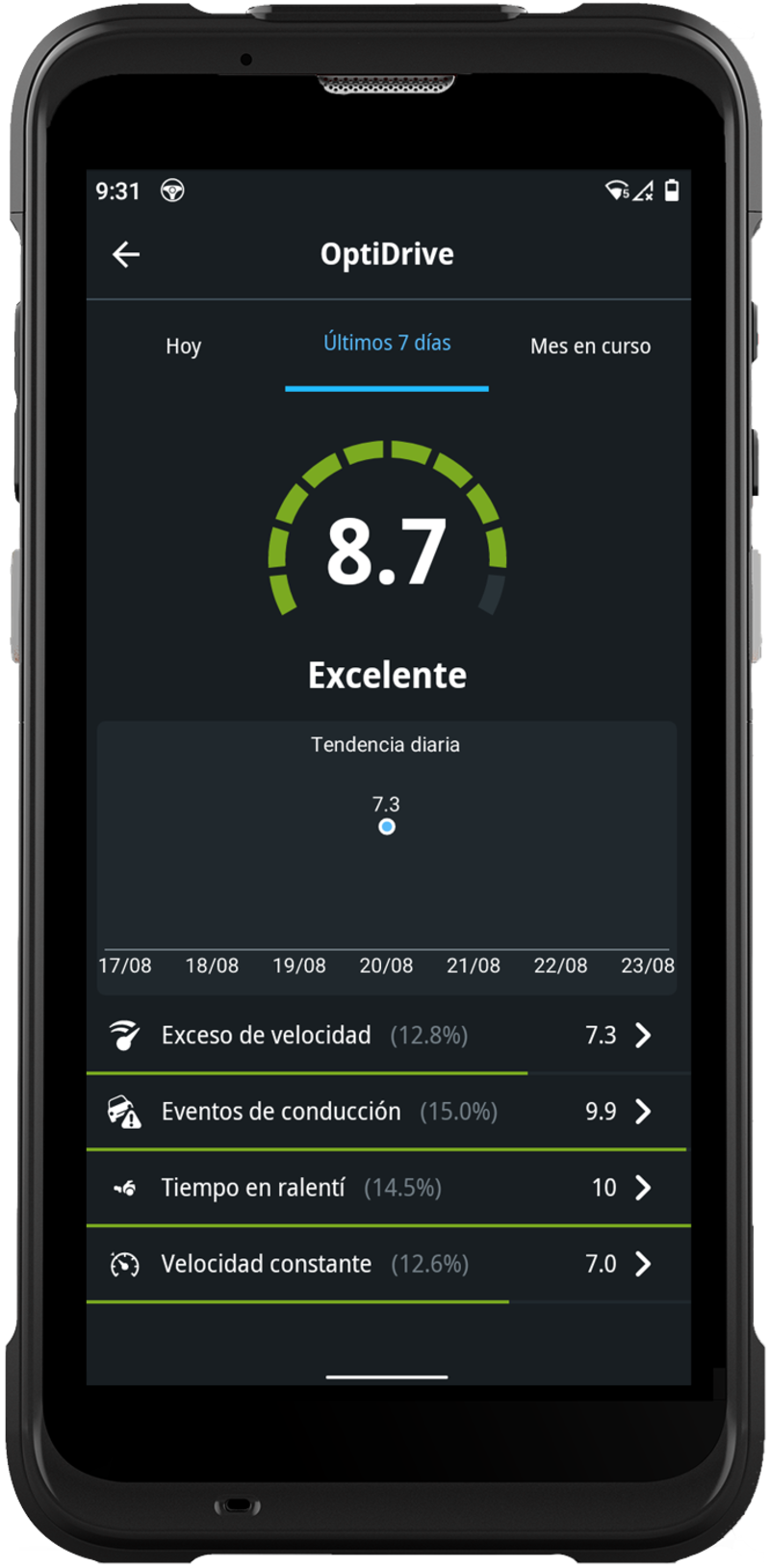 PRO M conecta a conductores y empresas en combinación con Webfleet, el galardonado software de gestión de flotas. Reúne una serie de funciones esenciales en un solo dispositivo, como la gestión de pedidos u órdenes de trabajo, la comunicación bidireccional entre los conductores y el administrador de flotas. Ofrece además visibilidad de los indicadores que ofrece OptiDrive 360, que permite a los conductores identificar aspectos de mejora en sus hábitos de conducción, y el registro automático del tiempo de trabajo y del kilometraje, en función de cumplir con las normativas legales.