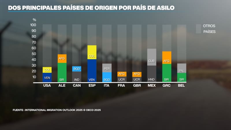Por otro lado, el reporte de perspectivas de la OCDE estableció para cada país de asilo los dos principales países de origen de migrantes, mostrando una alta movilización de latinoamericanos.