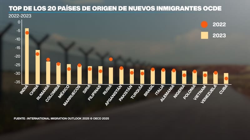 Y en la última medición del top 20, entre 2022 y 2023, siguen dominando las naciones asiáticas, 8 en total, en una movilidad marcada por conflictos. En esa misma lista llama la atención la presencia de cinco países latinoamericanos: Colombia, México, Brasil, Venezuela y Cuba.