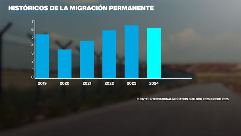 En los 38 miembros de la OCDE, 6,2 millones de personas se mudaron permanentemente de país en 2024. La cifra, que forma parte del Informe de Perspectivas Migratorias 2025, mostró una disminución del 4% después de tres años de crecimiento representativo.