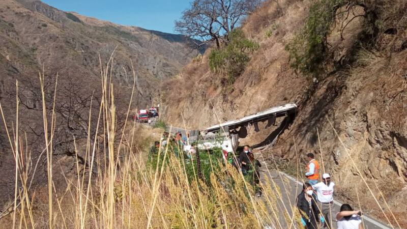 La radio dijo que el bus cayó a un abismo de 200 metros.