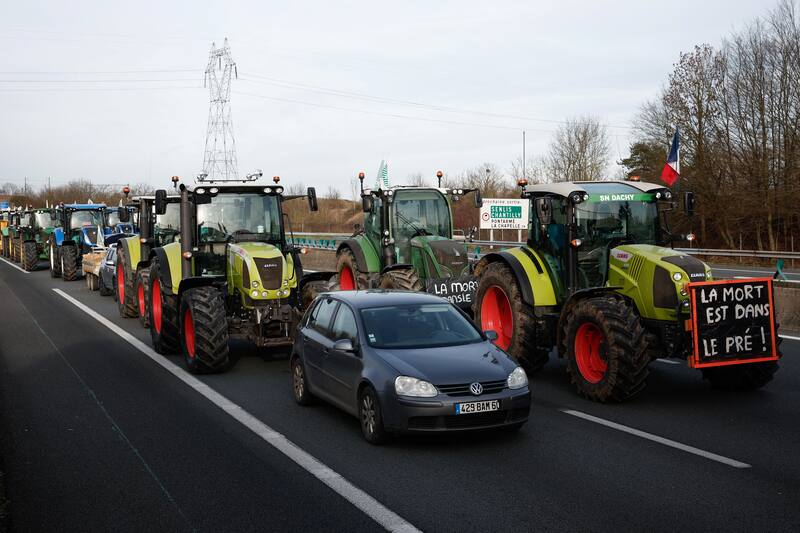 “Todos los grandes ejes de ruta serán ocupados por agricultores”, indicó un comunicado conjunto de los dos sindicatos, y así ha venido siendo, con tractores bloqueando las salidas de París.