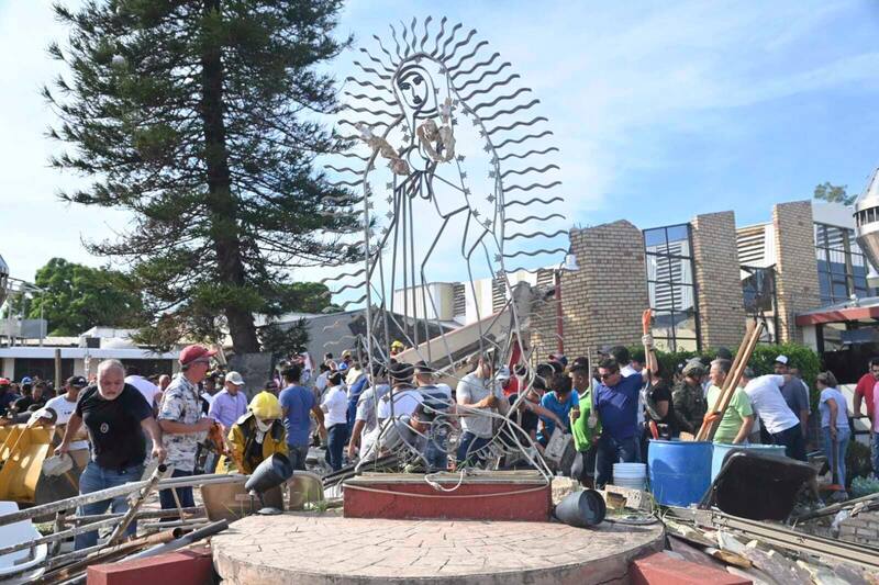 Además mostró las labores iniciales para levantar con una grúa partes del techo en la parte más cercana al suelo, en el centro de la iglesia. Pero la agencia señaló que se dejaron de lado los intentos por levantar algunas secciones debido al riesgo de que un pedazo de losa pudiera caer de nuevo y poner en peligro a cualquier sobreviviente.