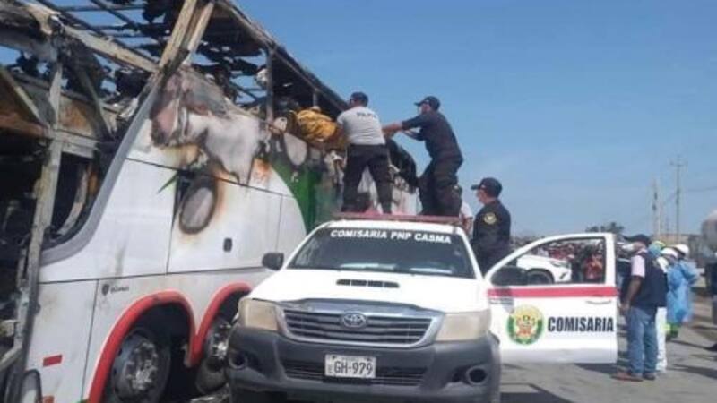 Al menos 12 personas fallecieron calcinadas en la madrugada de este domingo en el incendio originado tras una colisión entre un autobús y un mototaxi en el kilómetro 380 de la carretera Panamericana Norte, en la provincia de Casma, en la región peruana de Áncash.