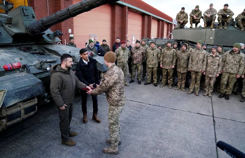 Sunak y Zelensky volaron en helicóptero a Lulworth Camp, una base en el suroeste de Inglaterra, donde se encontraron con tropas ucranianas que estaban siendo entrenadas en los tanques Challenger 2 que Reino Unido está enviando como parte de los cientos que Kiev dice que necesita. Más de 10.000 soldados ucranianos han sido entrenados en bases en Reino Unido y Gran Bretaña y afirma que entrenará a 20.000 más en 2023.