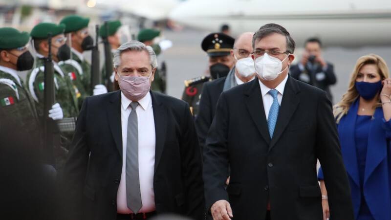 El canciller mexicano, Marcelo Ebrard, fue el encargado de recibir al mandatario transandino en el aeropuerto de Ciudad de México, según una transmisión en redes sociales oficiales del gobierno argentino.