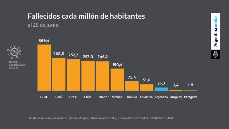 También mostró otra tabla donde comparaba los fallecidos por cada millón de habitantes, donde países como Estados Unidos, Perú, Brasil y Chile tomaban los primeros lugares.