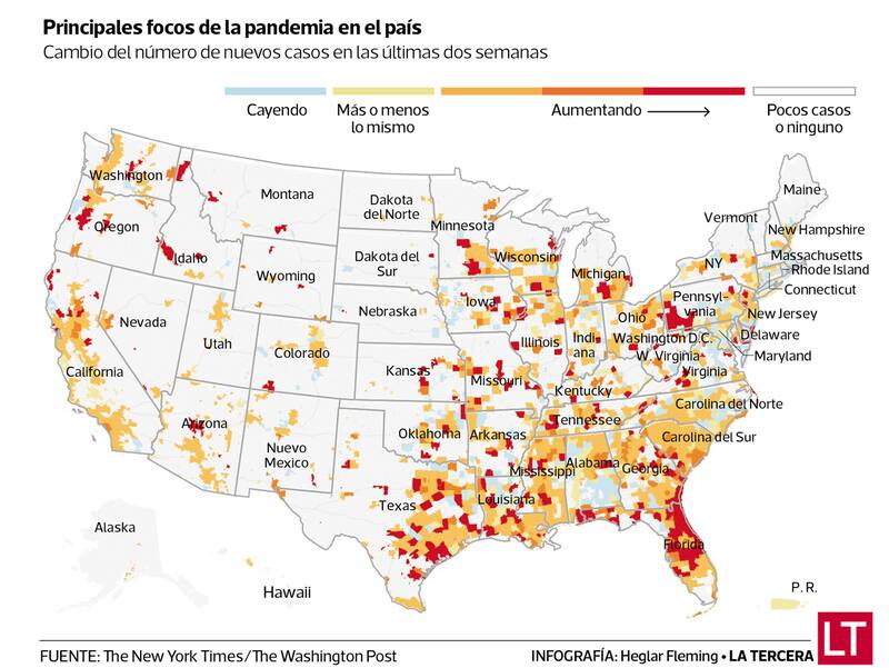Alza de casos obliga a más de la mitad de EE.UU. a revertir o frenar reapertura
