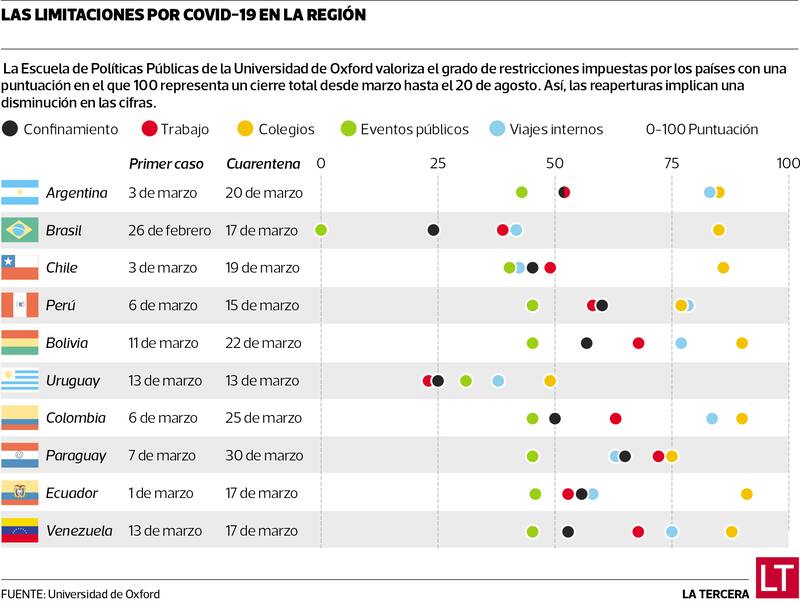 La región registra cuarentenas de cinco meses, en el caso de Argentina, Perú, Bolivia, Ecuador, Colombia y Chile.
