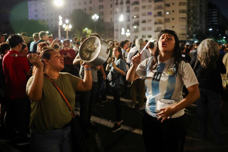 Argentinos realizan cacerolazos y marchan hacia el Congreso en descontento por anuncio de Milei sobre medidas para desregular la economía